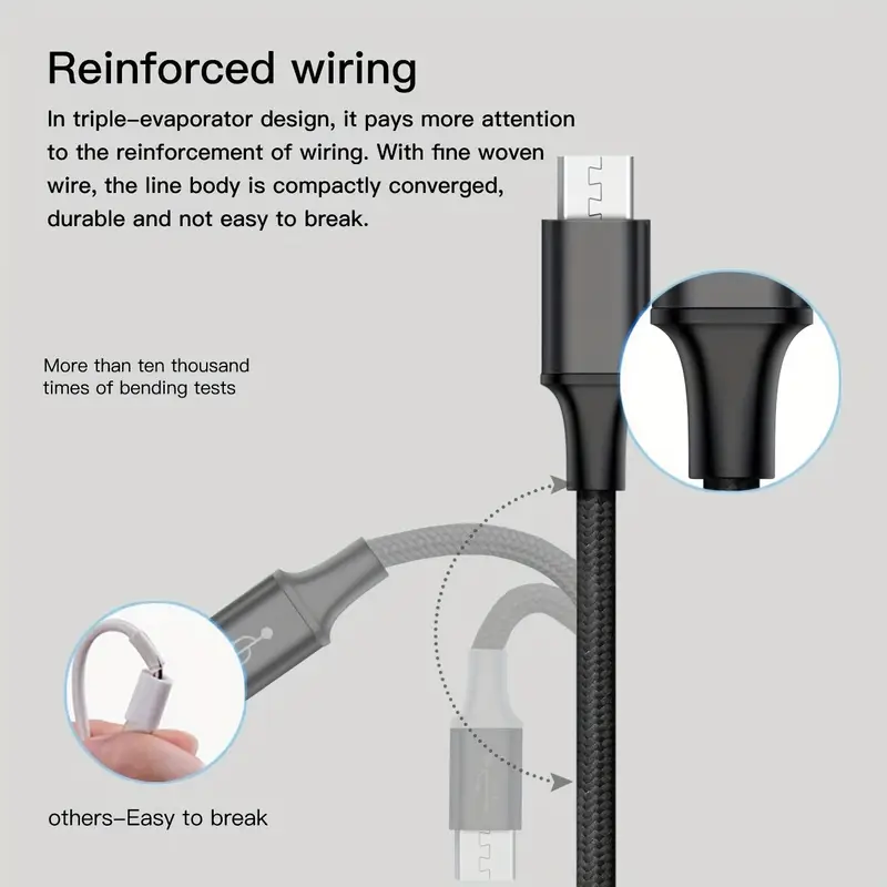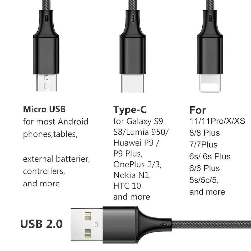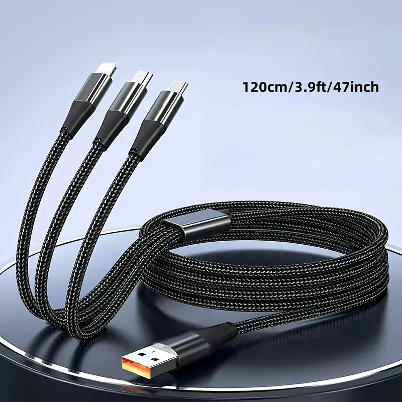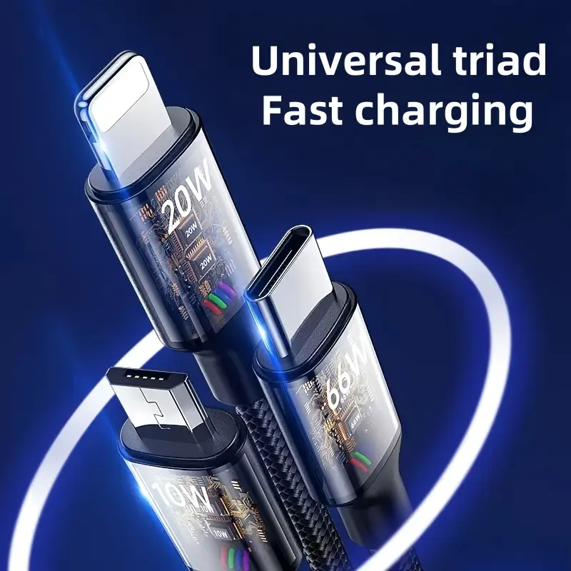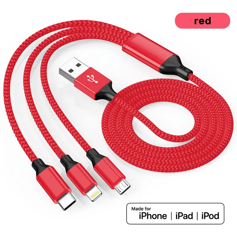 Nylon Braided 3-in-1 Fast Charging Cable - For iPhone 14/13/12 Series, Samsung, Oppo, Redmi & More |