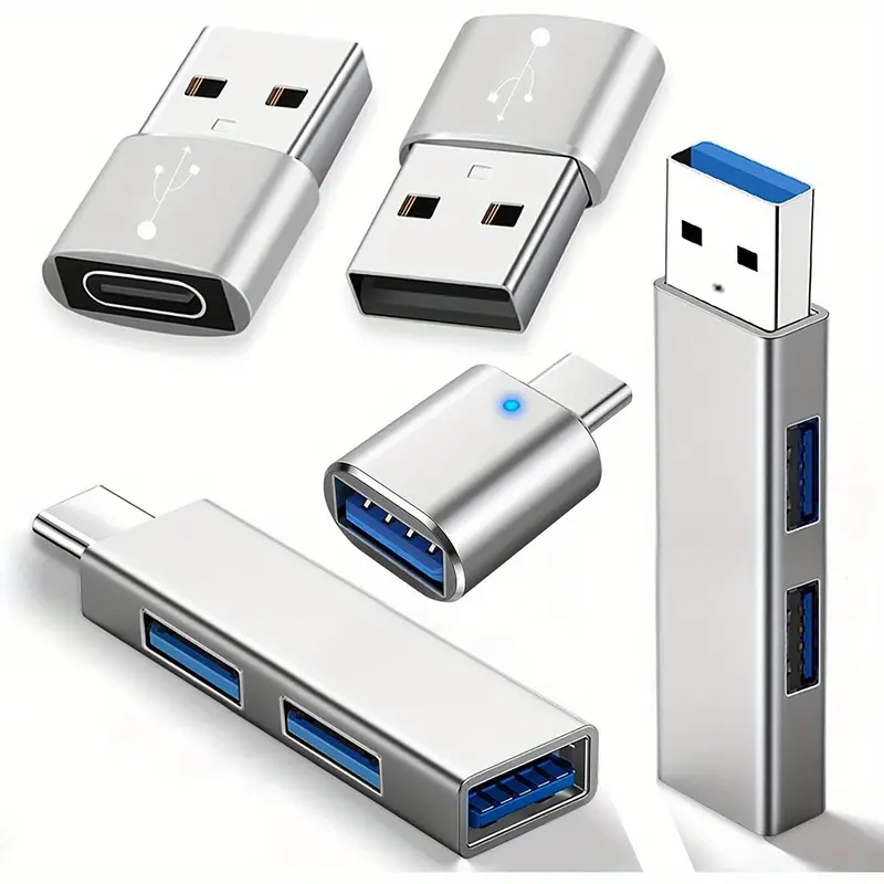 5pcs Compact USB Adapter & Hub Set - USB-C to USB-A, 3.0 Hub, OTG, for Laptops, Mobile Phones, and Tablets