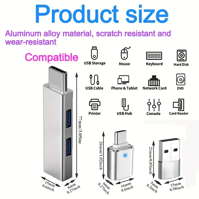 5-Pack Multi-Functional USB Adapter & Hub - Fast Charging, OTG, USB-C to USB-A, 3.0 Hub for Phones, Laptops, and Tablets