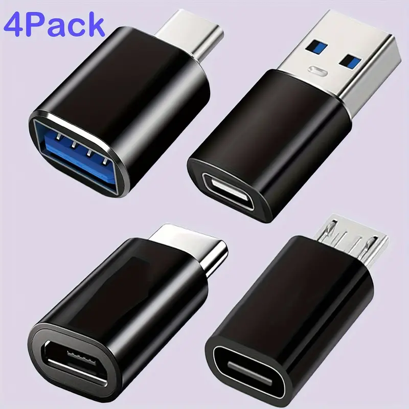 USB-C OTG Adapter Set (4pcs) - USB 3.0 to USB-C & Micro USB to USB-C for MacBook, PCs, Smartphones, and In-Car Use