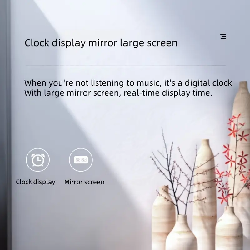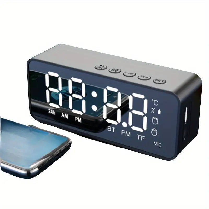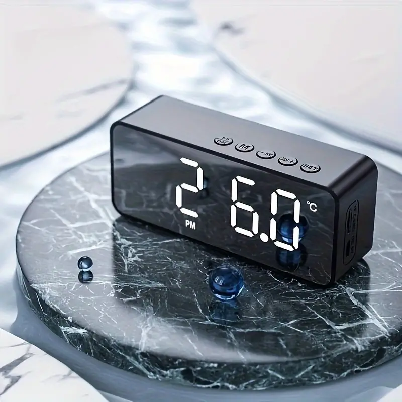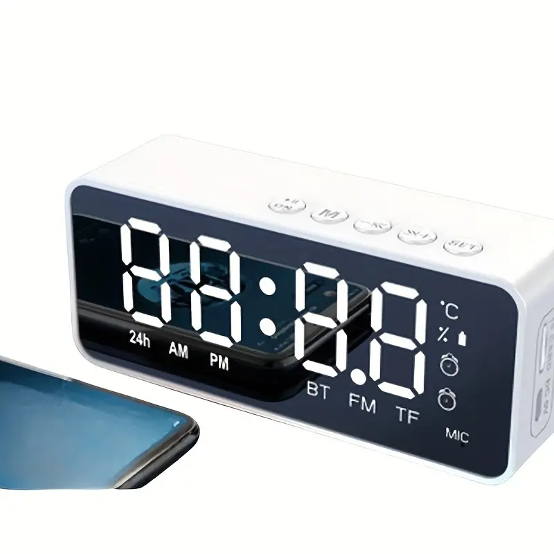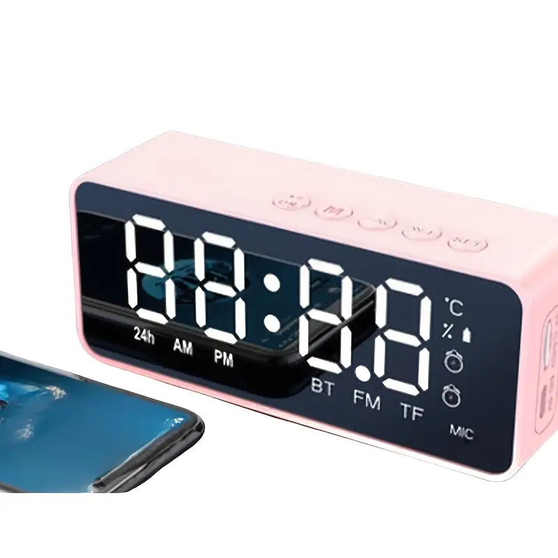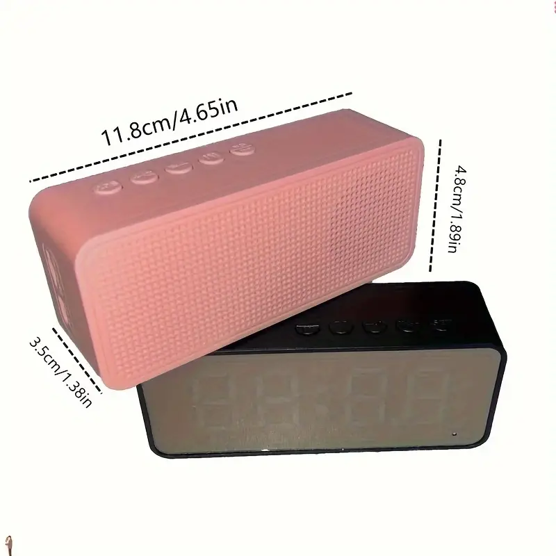 | Stylish Mirror Clock Wireless Speaker – Stereo Sound, FM Radio, TF Card Support, USB Rechargeable, Ideal for Bedroom Decor |