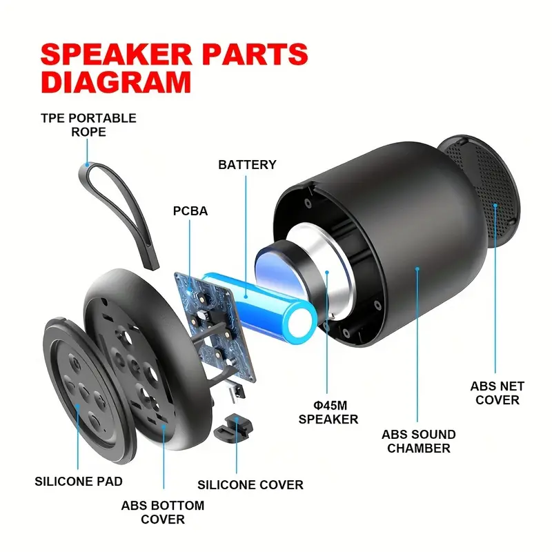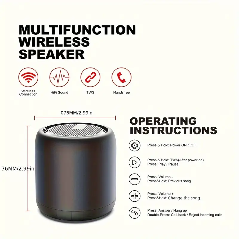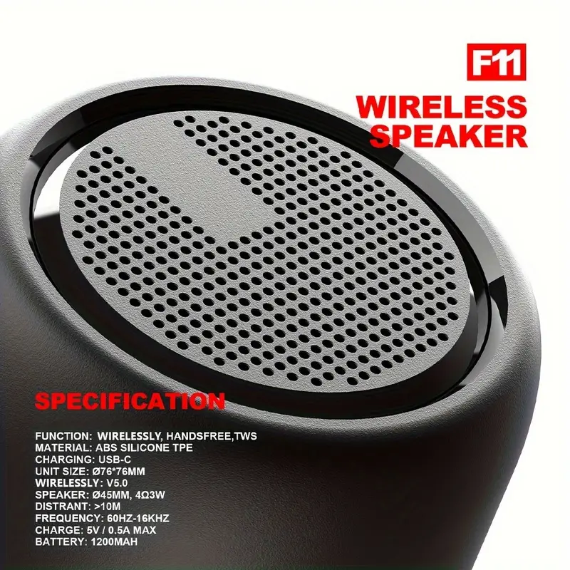 TWS Wireless Speaker with Deep Bass – 5.0 Bluetooth, 1200mAh Battery, 393.7-inch Range, Silicone Cover & Fast Charging
