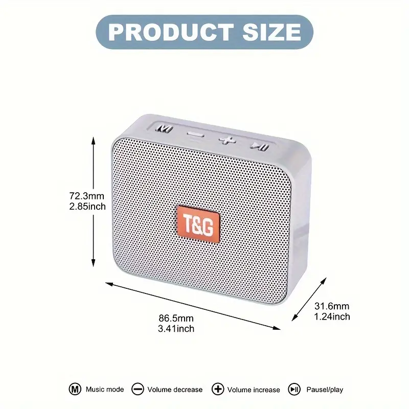 | T&G 166 Mini Wireless Speaker – Portable Square Music Player with TWS, FM Radio, TF Card, USB, and Hands-Free Calls |