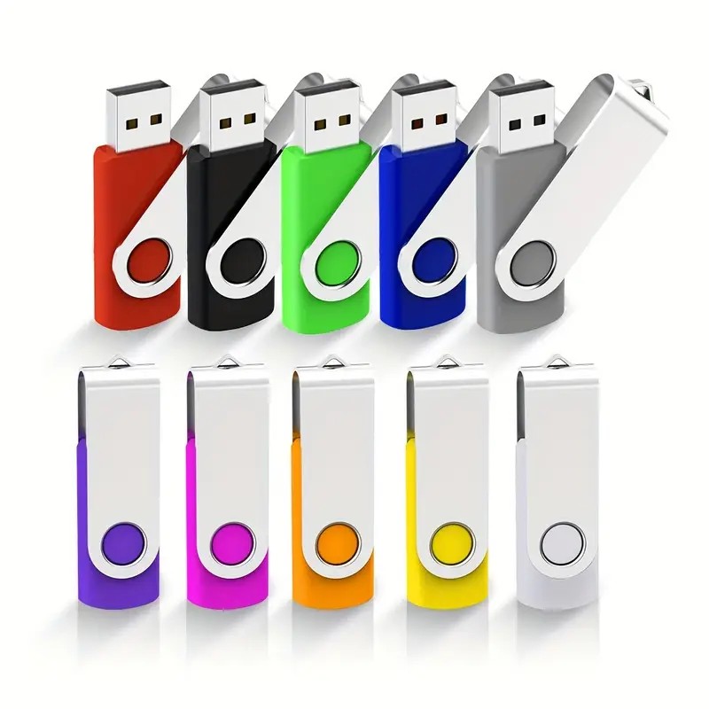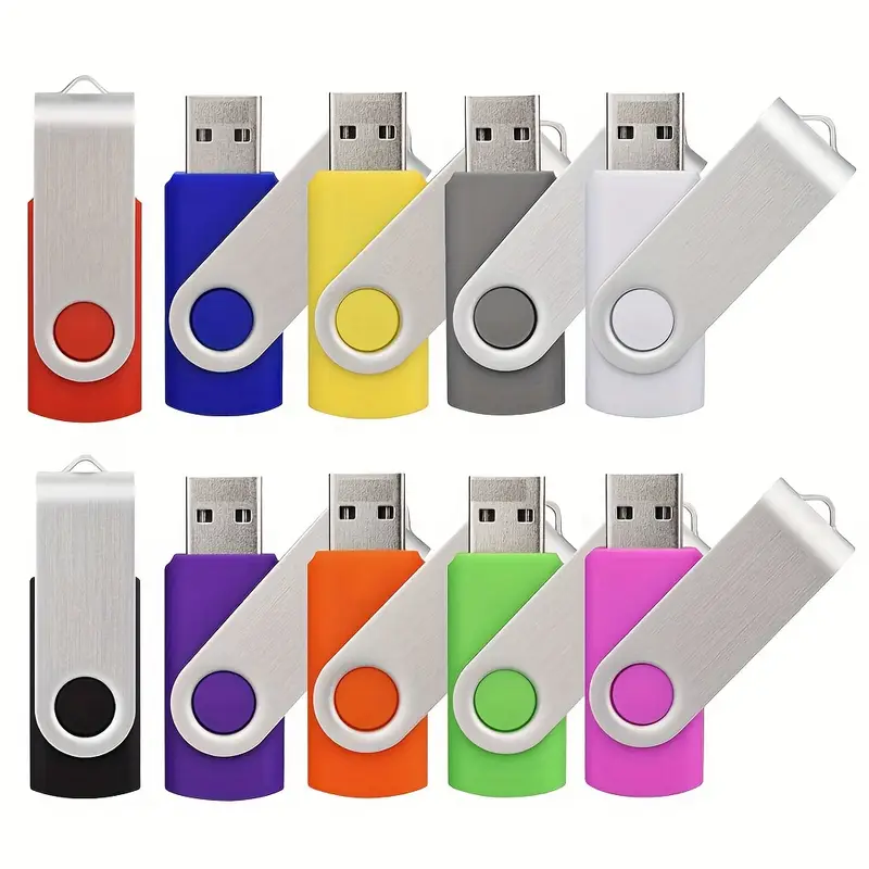 Swivel USB 2.0 Thumb Drive Set (10pcs) – Metal Cover, Multi-Color, 4GB-64GB for Data Transfer & Backup