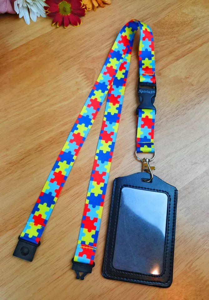 Spirius Original Lanyard Neck Strap with BLACK Leather ID Card Badge Holder