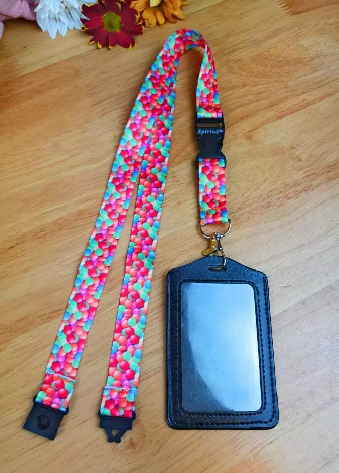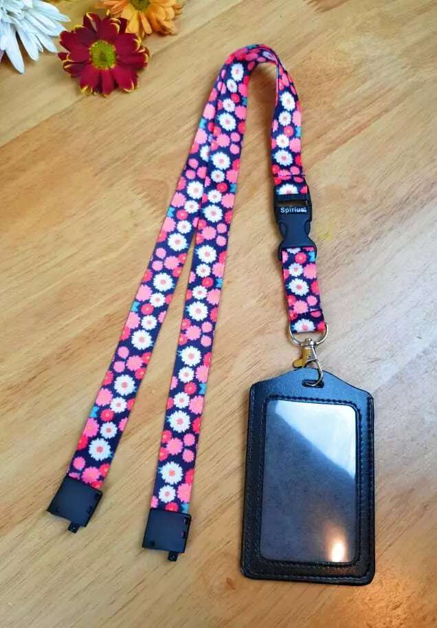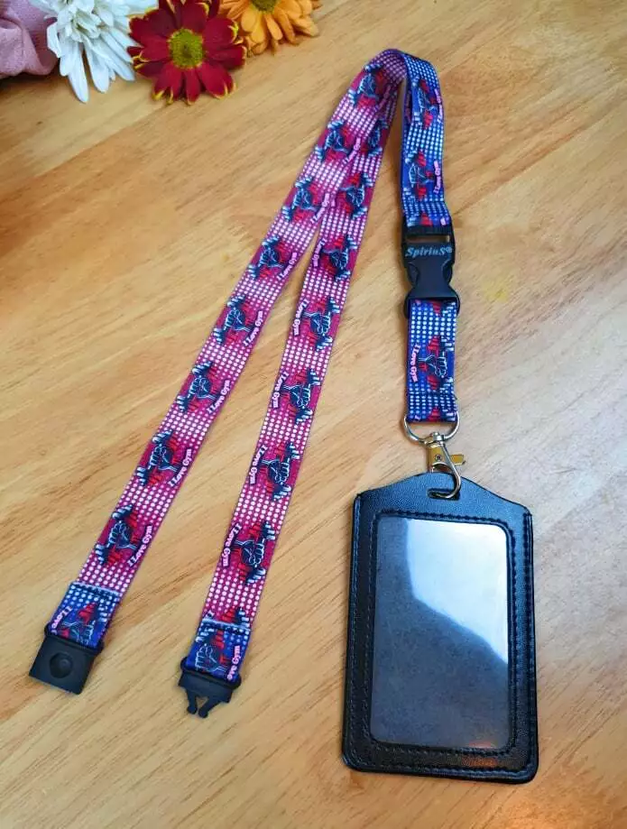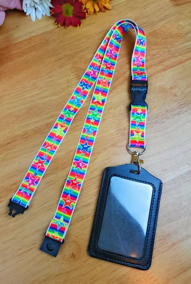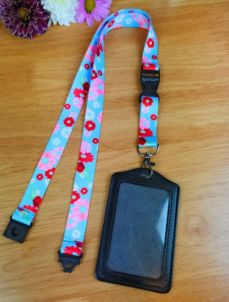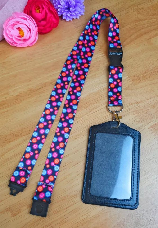 Black Leather ID Card Badge Holder with Spirius Original Lanyard Neck Strap