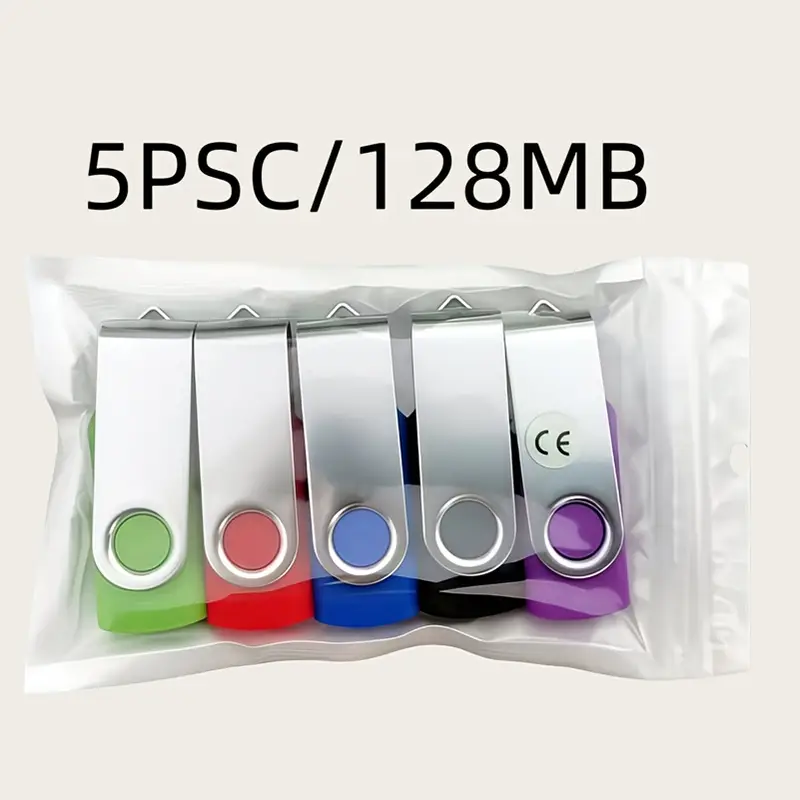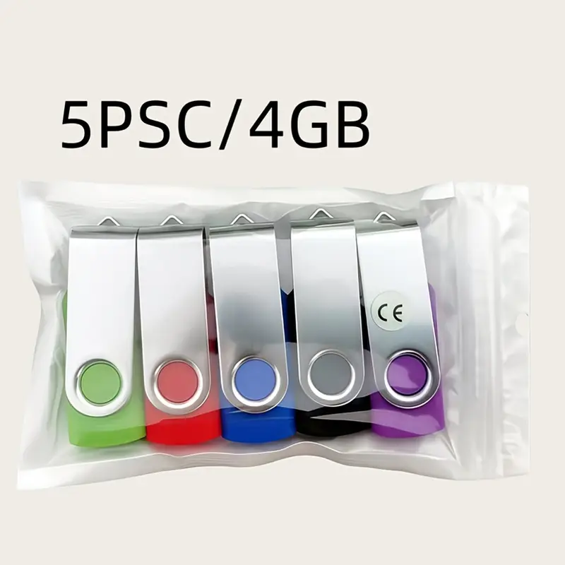 Assorted 5-Pack USB Flash Drives – Rotary Design, USB 2.0 High-Speed Transfer, Available in 4GB to 64GB
