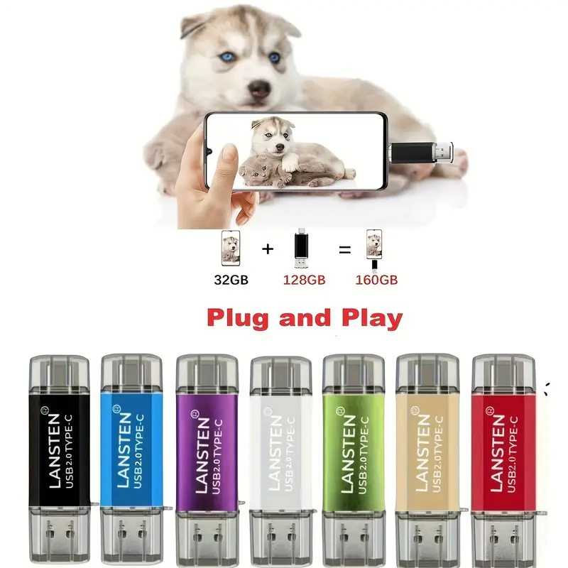 LansTen USB 2.0 Flash Drive – Available in Black, Blue, Silver, and Red (4GB-128GB) for Phones & Computers