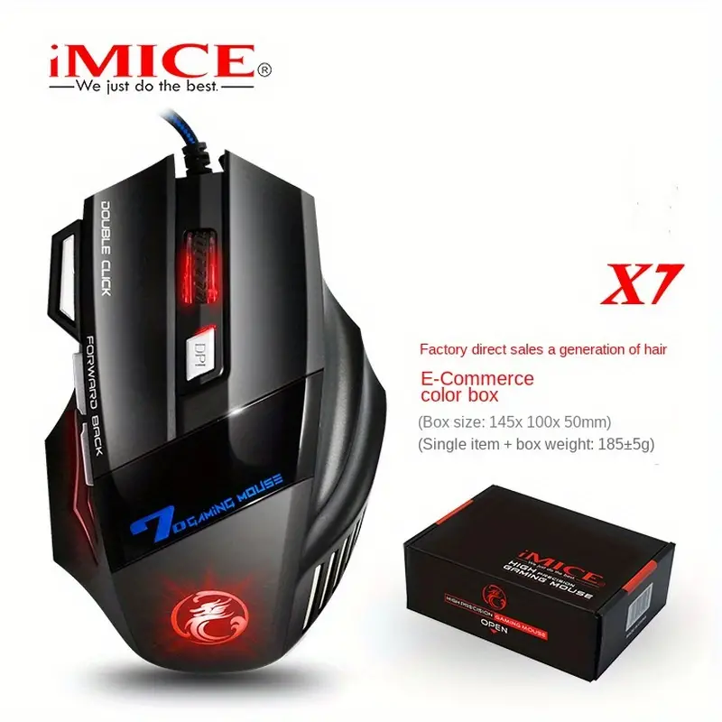 | Wired E-sports Mouse by NEWTAG – 7 Buttons with Firepower Key, USB Connectivity, and Long Cable for Enhanced Gaming Experience. |