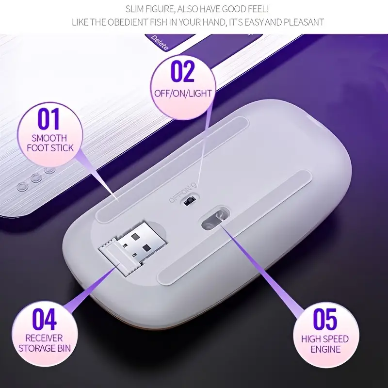| NEWTAG Silent Wireless Mouse with Rechargeable Battery – Small, Luminous, and Ergonomic for Small Hands, 2.4GHz Wireless, 10 Meter Range, Lightweight for Long Office Use, Great Home Gift |