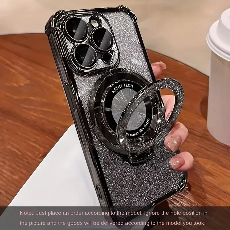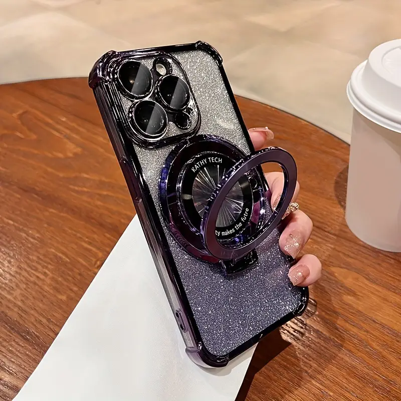 Luxury Clear Glitter Phone Case with Ring Stand – MagSafe Wireless Charging & Lens Protection for iPhone 15/14/13/12 Pro Max, 15/14 Plus