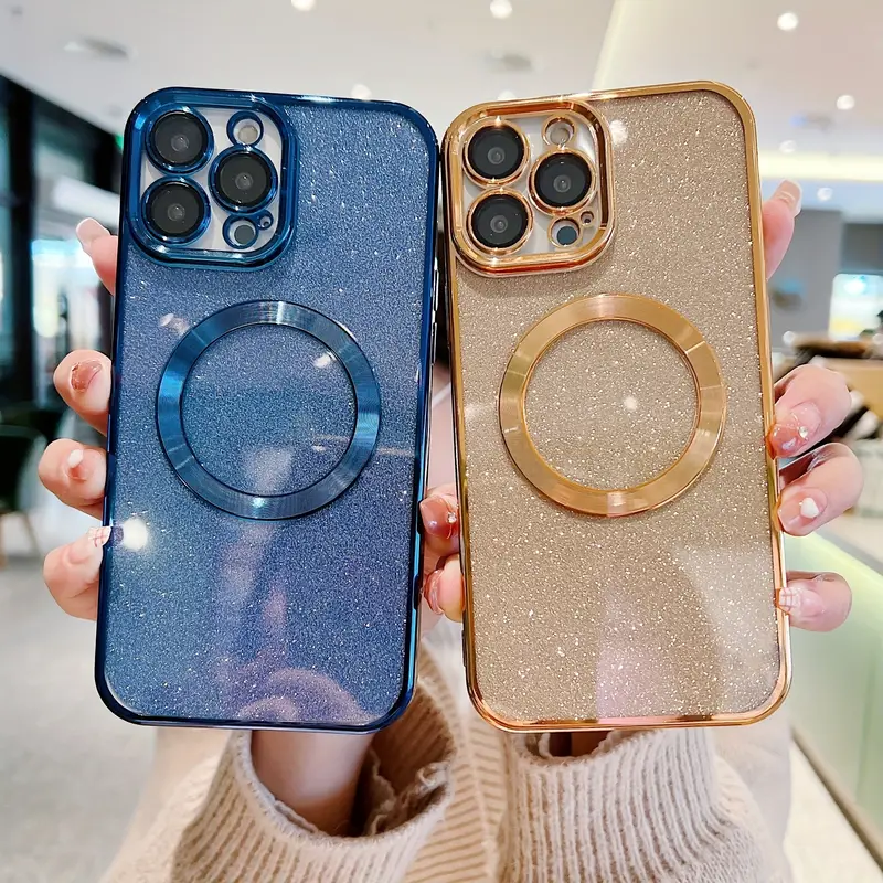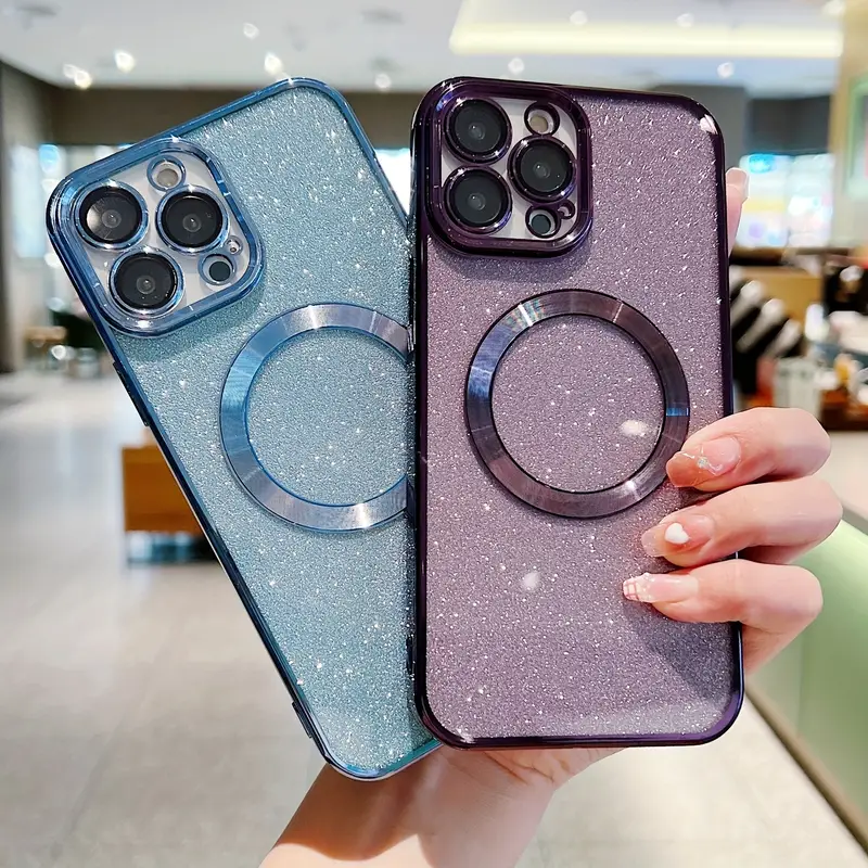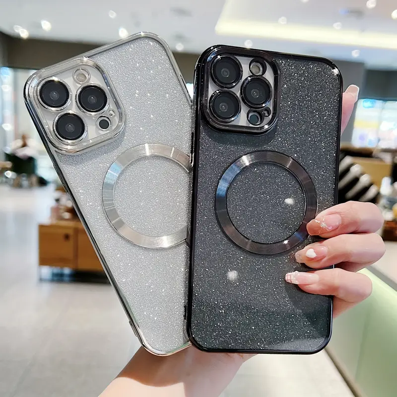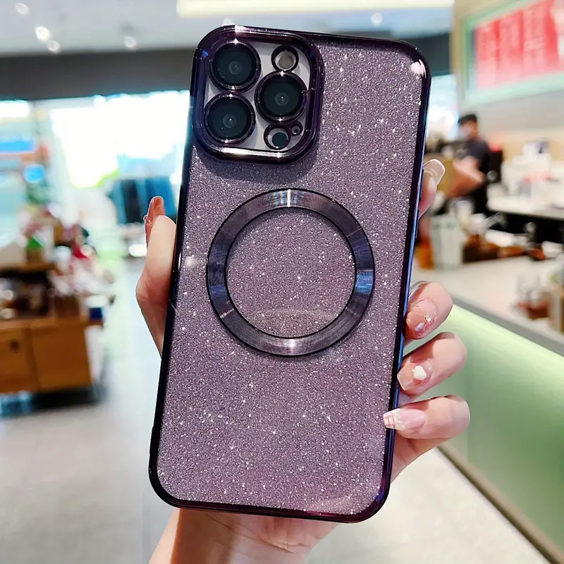 Super Strong Magnetic Glitter Case – Electroplated Protection for iPhone 15/14 Pro Max, 13/12/11 Pro Max Series