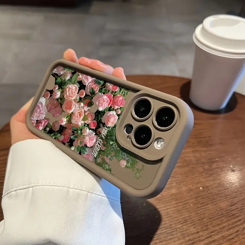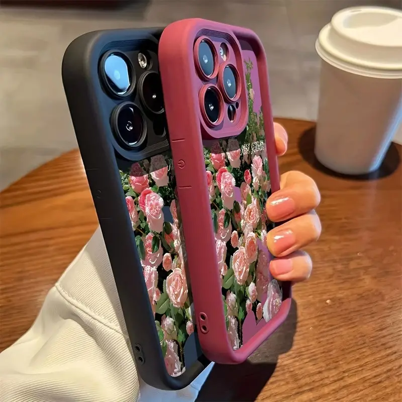 Personalized Pink Rose iPhone Case – Cute Anti-Fall TPU Cover for iPhone 15 Pro Max/14/13/12/11, Ideal Couple Gift