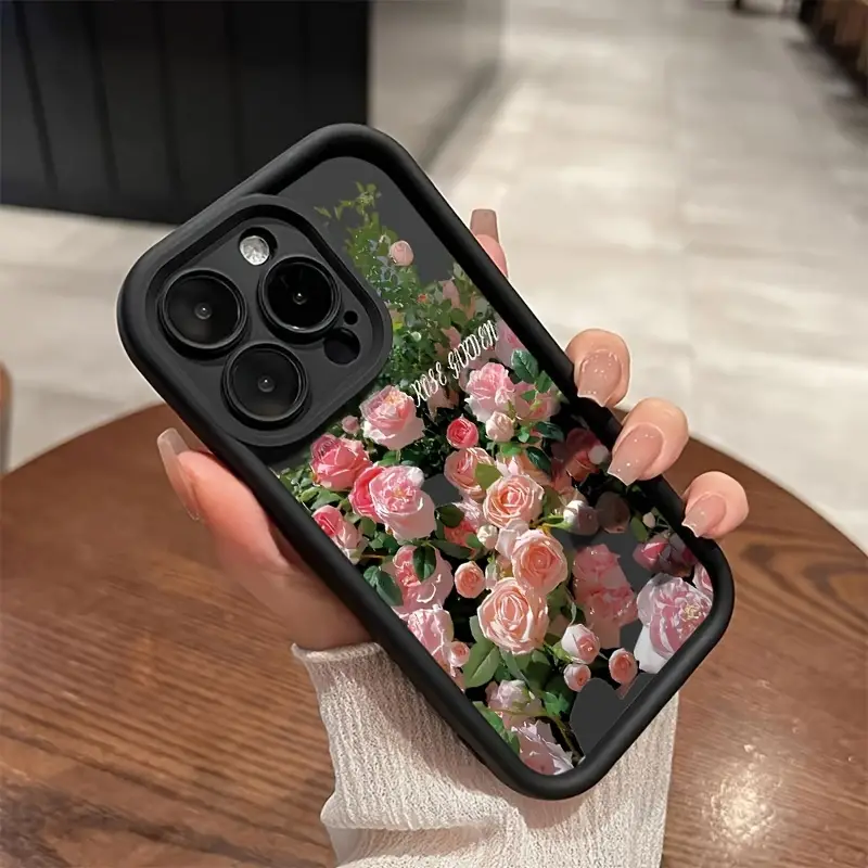 Pink Rose Anti-Fall TPU iPhone Case – Stylish Design for iPhone 11/XR/XS Max/12/13/14/15 Plus Pro Max, Perfect for Couples