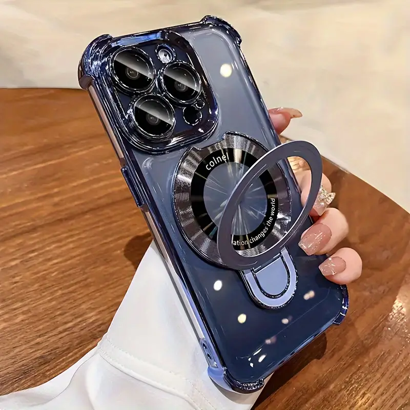Premium Magnetic Ring Case – Transparent Shockproof Design, Wireless Charging Compatible for iPhone 11/12/13/14/15 Pro Max