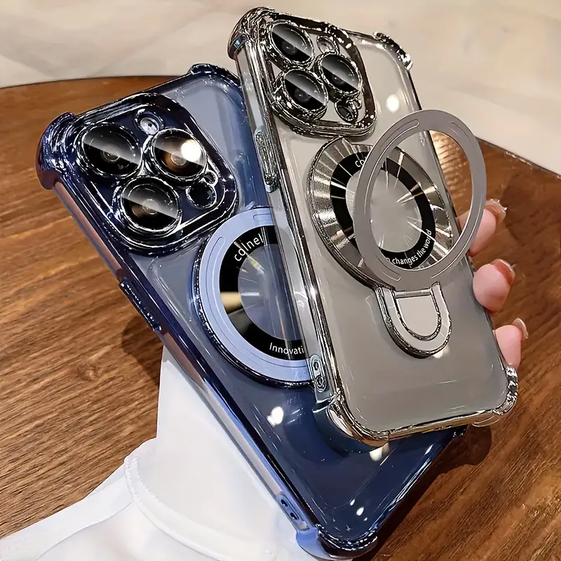 Luxury Magnetic Ring iPhone Case – Wireless Charging, Shock-Absorbing & Scratch-Resistant, Transparent Bumper for iPhone 11 to 15 Pro Max