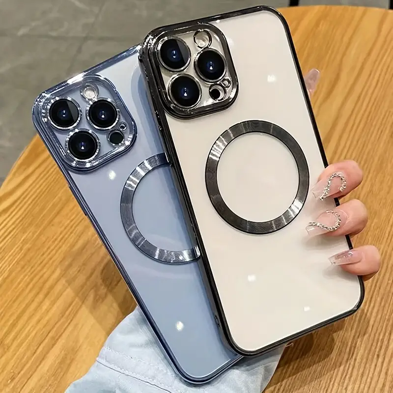Luxury Candy Color TPU Magnetic Case – Clear Electroplated Design with Camera Lens Cover & Wireless Charging for iPhone 11 to 15 Pro Max