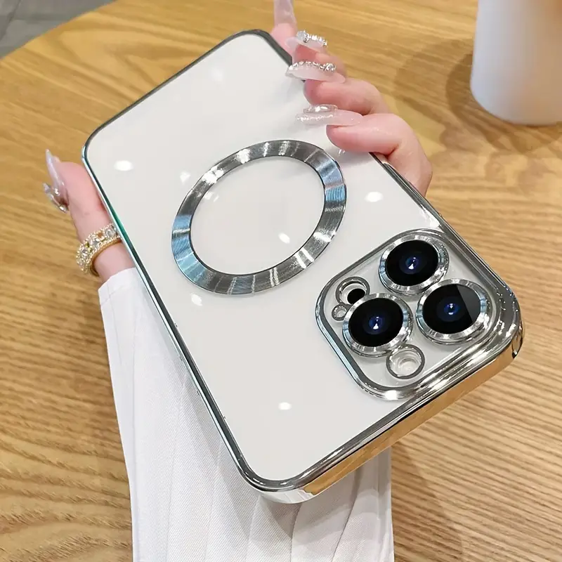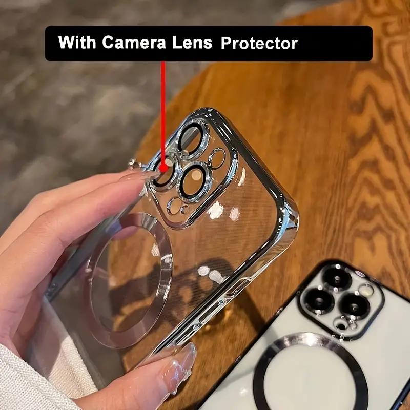 Electroplated Magnetic Clear iPhone Case – Candy Color TPU, Camera Lens Protection, and Wireless Charging for iPhone 11/12/13/14/15 Pro Max