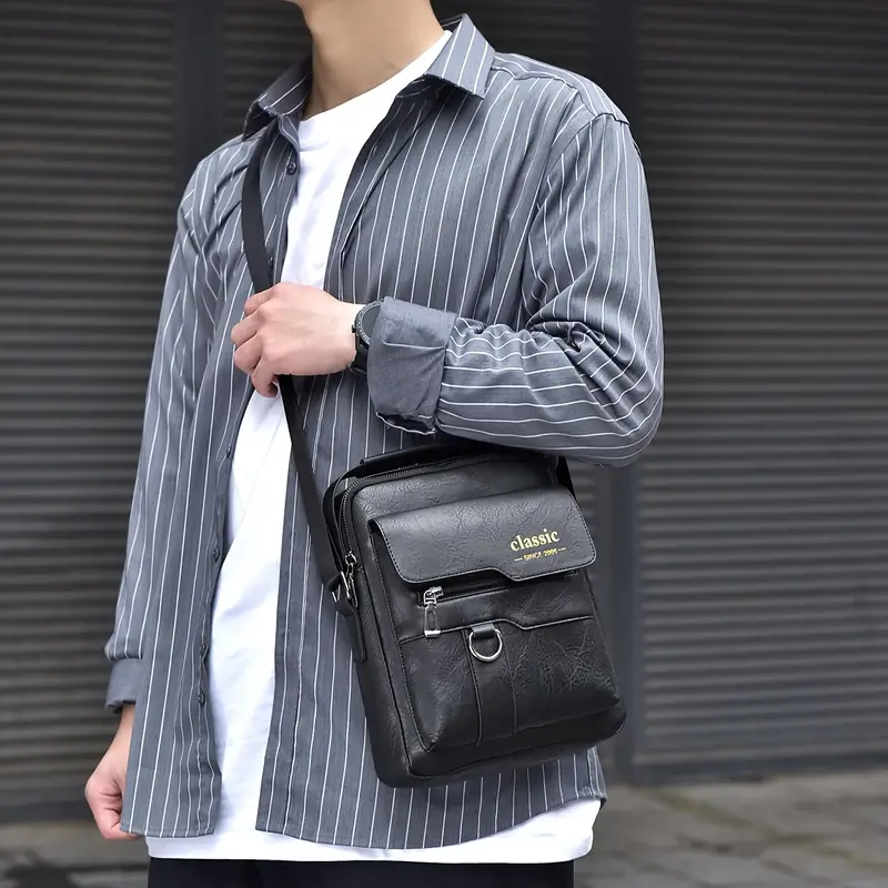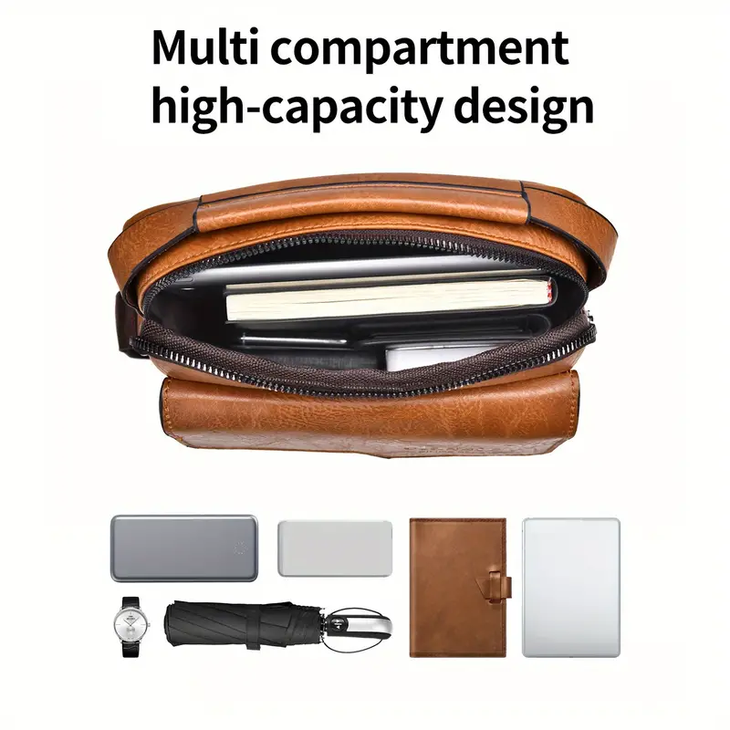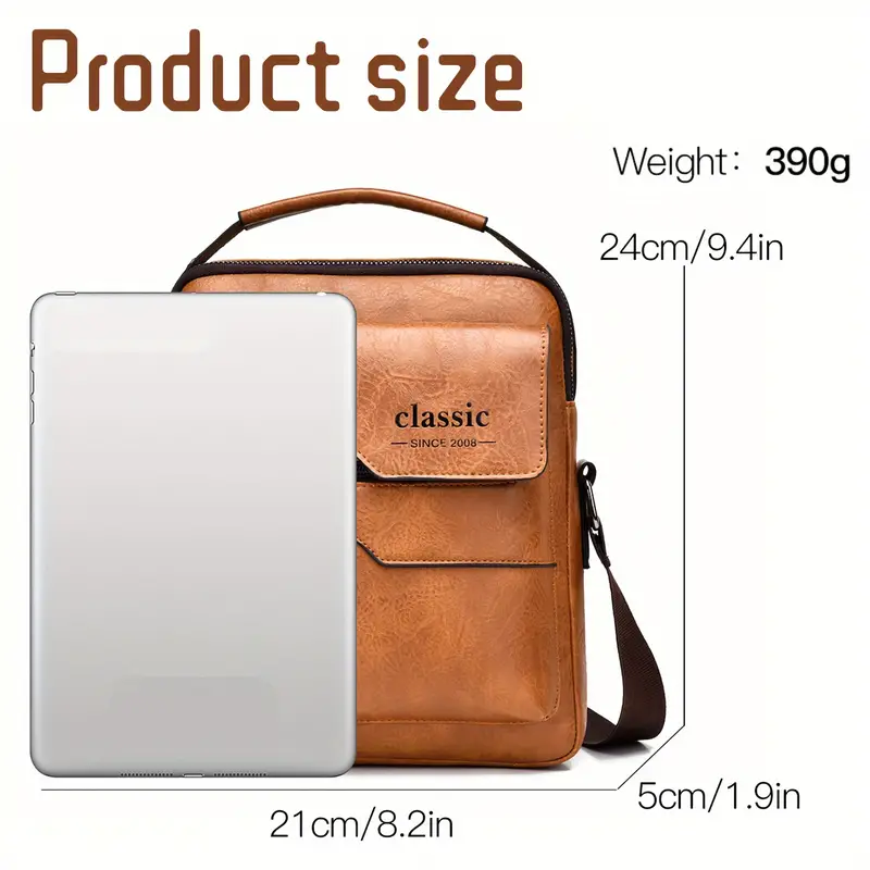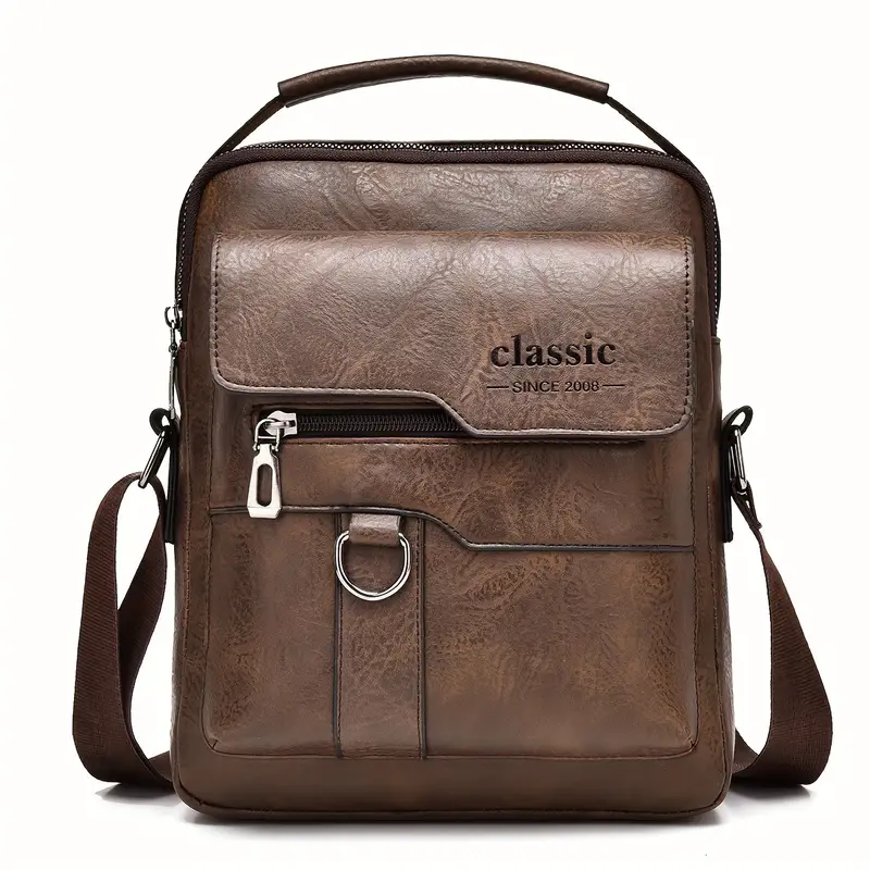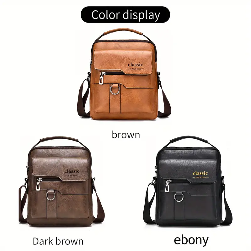 Retro PU Leather Shoulder Bag for Men – Spacious, Stylish, Vertical Briefcase, Ideal Valentine’s Day Gift