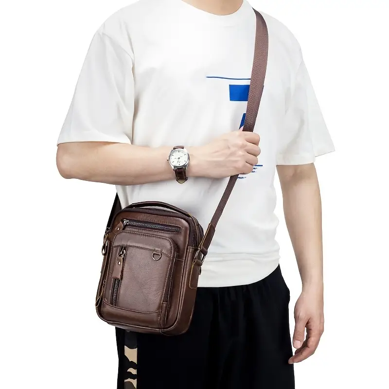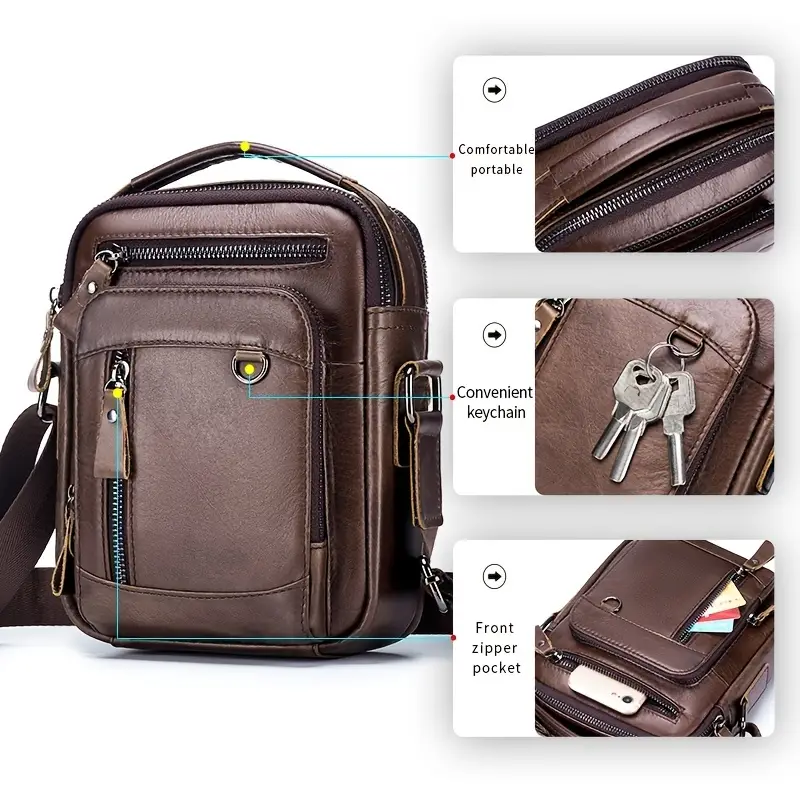 Premium Cowhide Leather Messenger Bag for Men – Double-Layered, Stylish, and Multi-Functional Design