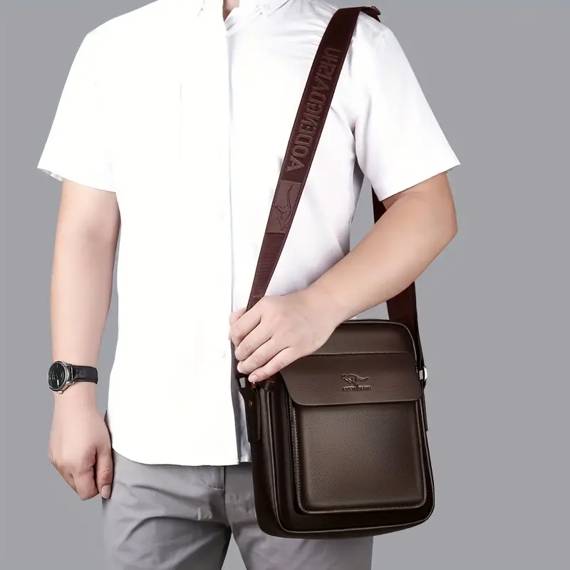 Men’s Modern Faux Leather Crossbody Bag – Black Multi-Pocket Satchel with Adjustable Strap for Business & Casual Style |