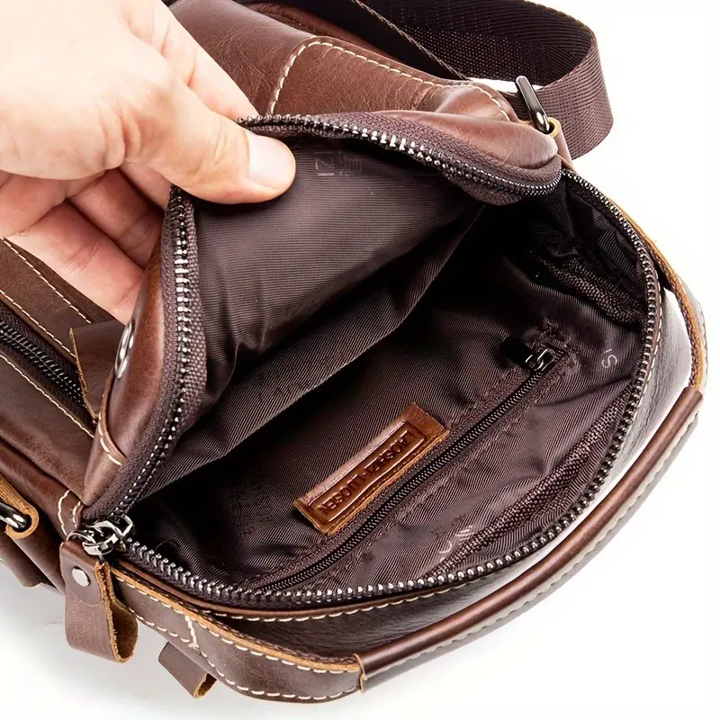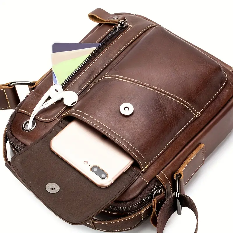 Luxury Cowhide Slant Shoulder Bag – Business-Ready Men’s Handbag with Earphone Slot, Perfect for Everyday Use