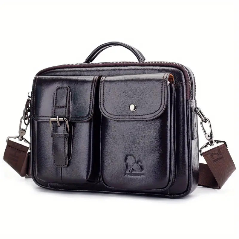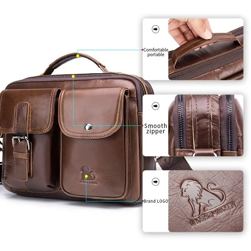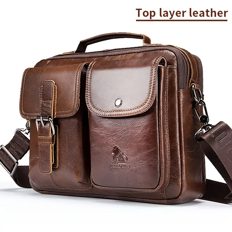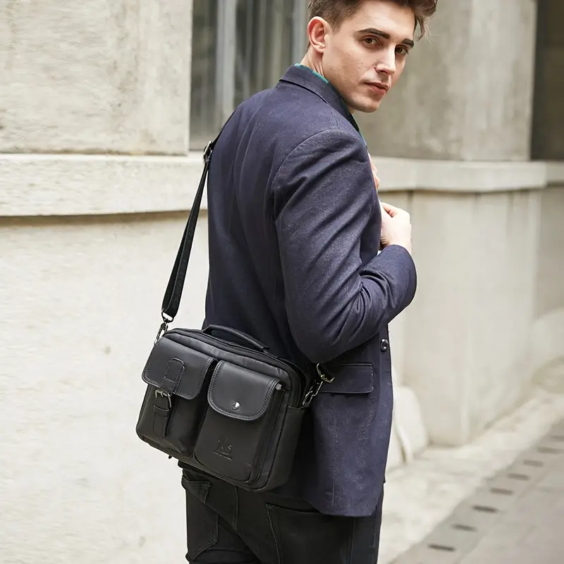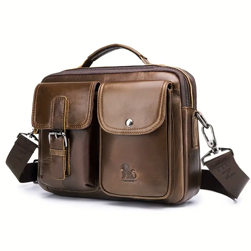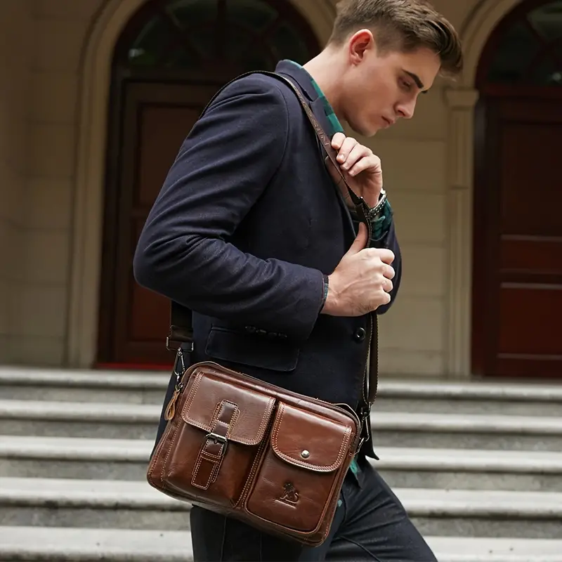Men’s Genuine Leather Square Shoulder Bag – Vintage-Style, Perfect for Casual Daily Carry
