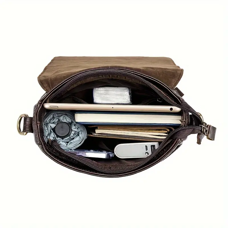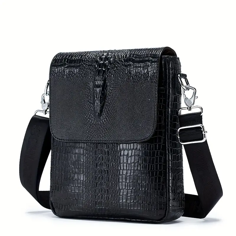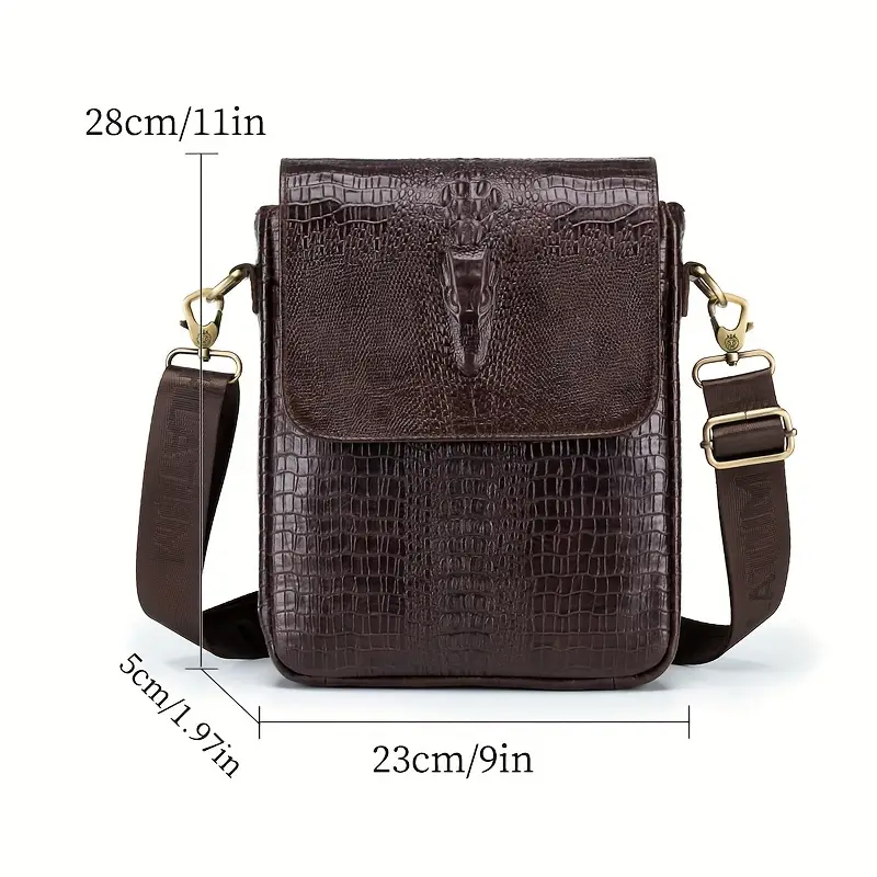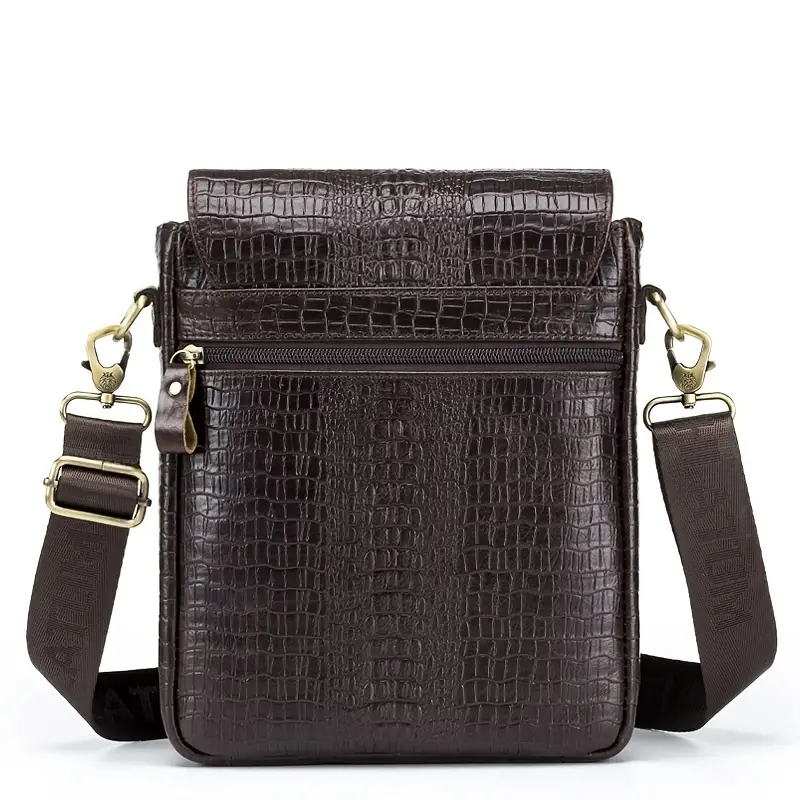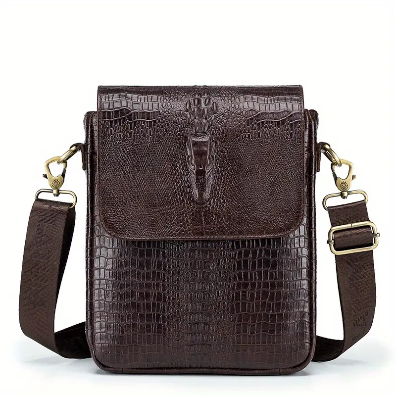 Men’s Genuine Cowhide Shoulder Bag – Vintage Crocodile Grain, Water-Resistant Crossbody for Stylish Daily Use