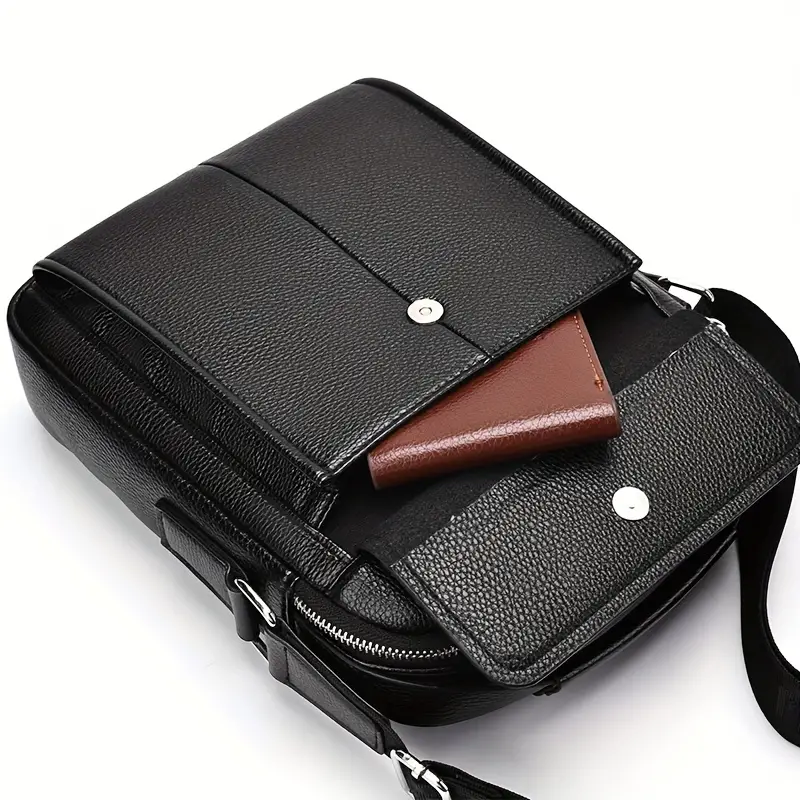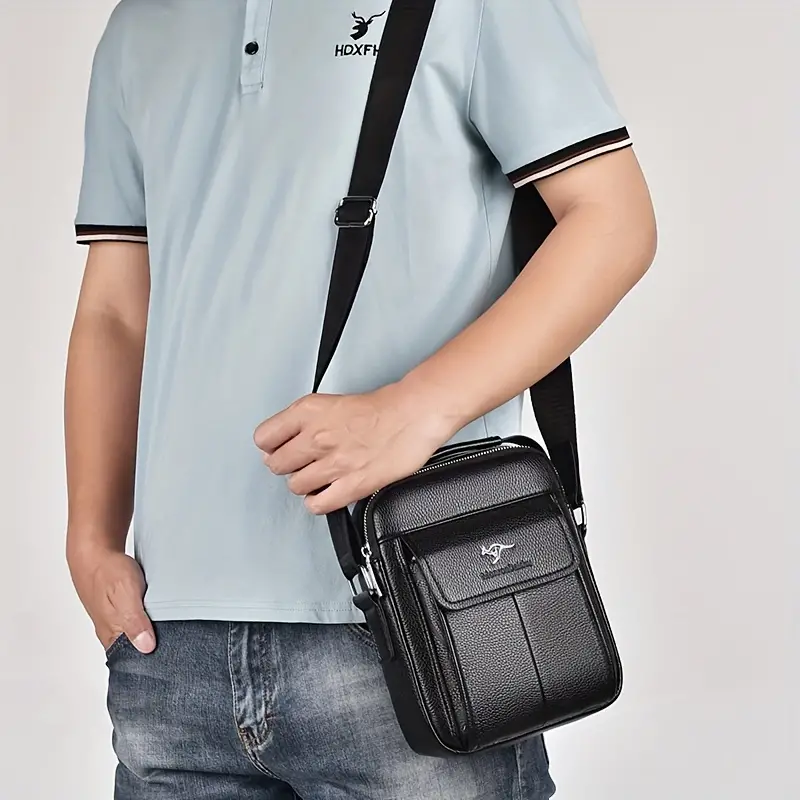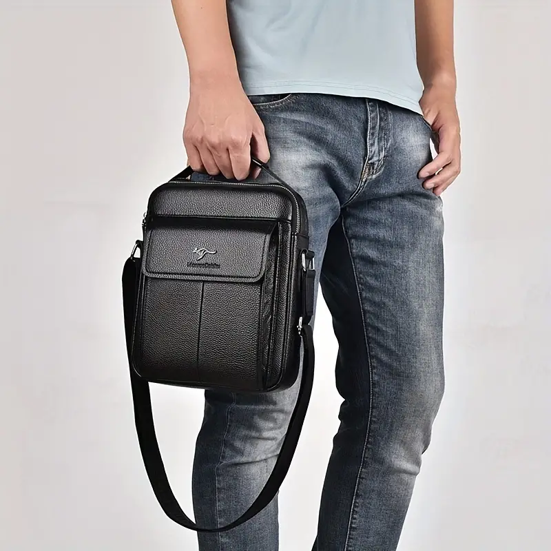Vintage Men’s Leather Shoulder Bag – Vertical Crossbody Briefcase for Travel and Business, Ideal Gift for Him
