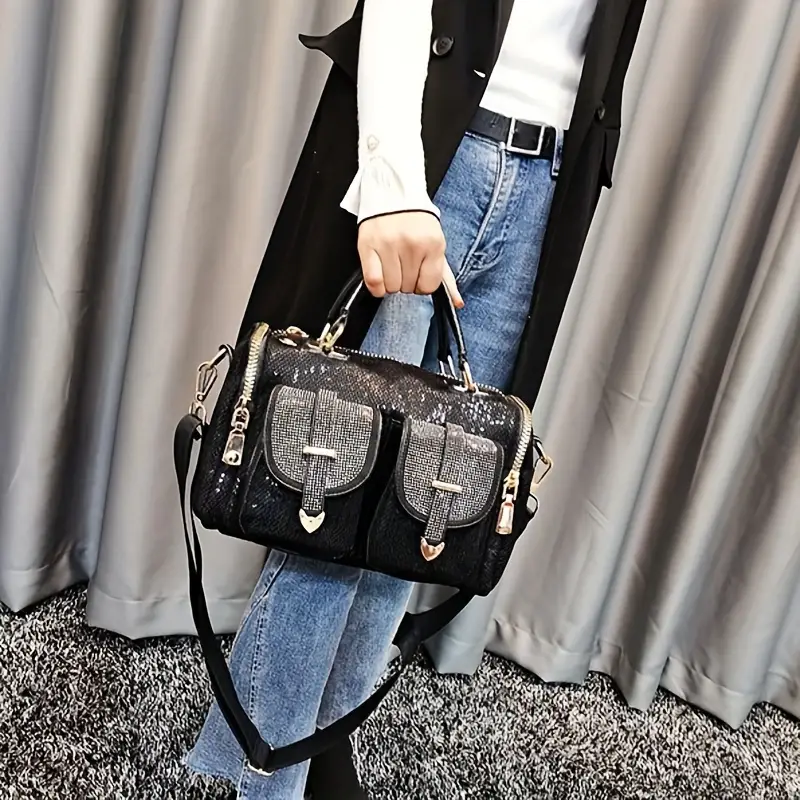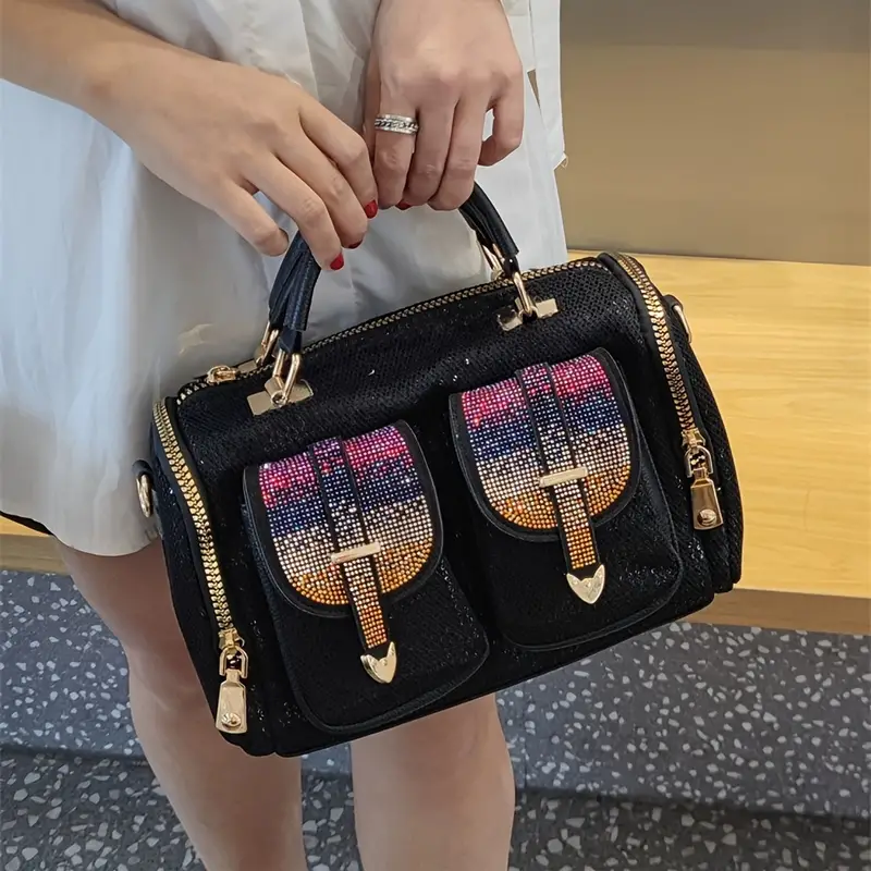 Dazzling Rhinestone Sequin Handbag – Vintage Punk Crossbody with Comfortable Handle |