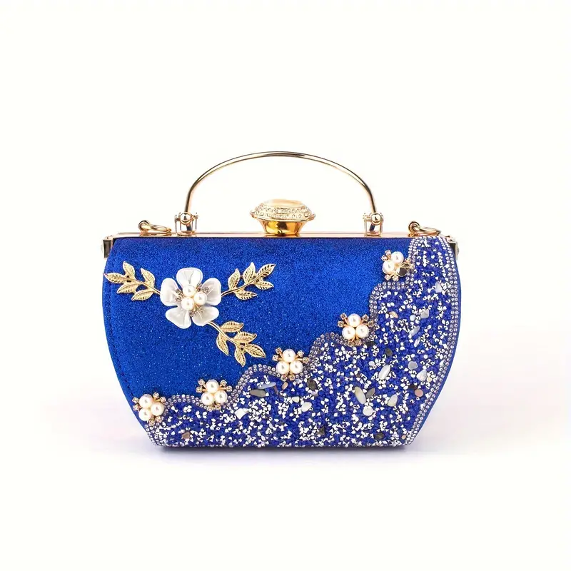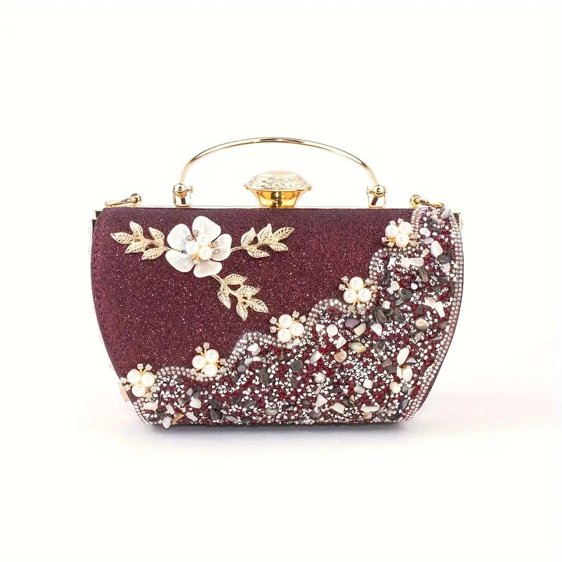 Elegant Floral Rhinestone Clutch – Lightweight Evening Bag with Detachable Strap for Weddings & Parties |