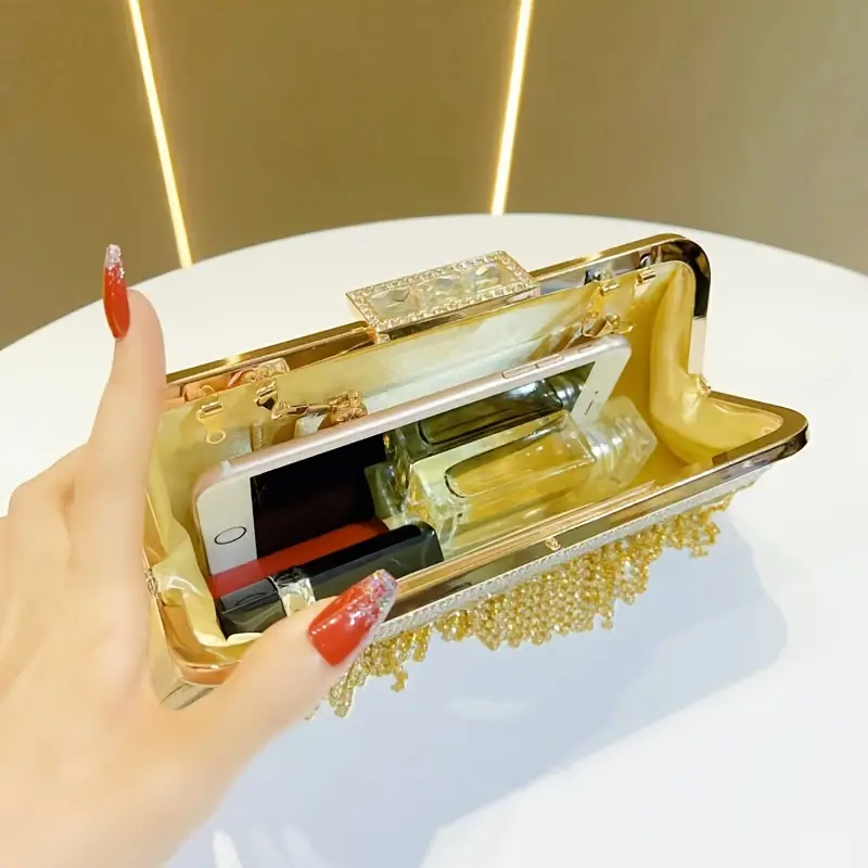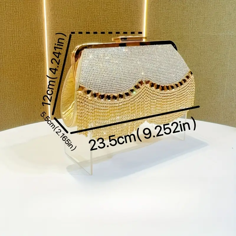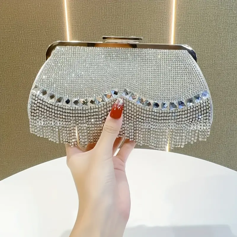 Fashionable Women's Sequined Clutch – Elegant Rhinestone Detail & Tassel for Formal Events