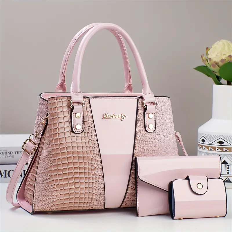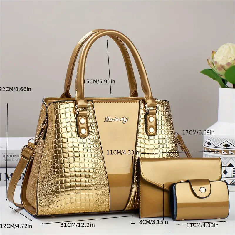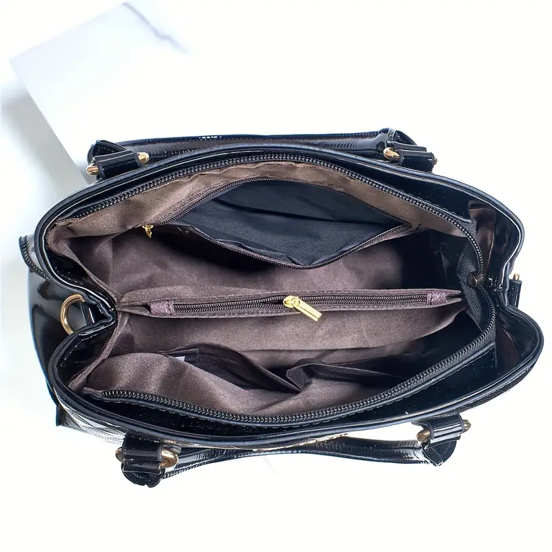 | Stylish Women's 3-in-1 Handbag Set – Glossy Tote, Crossbody & Credit Card Pouch |