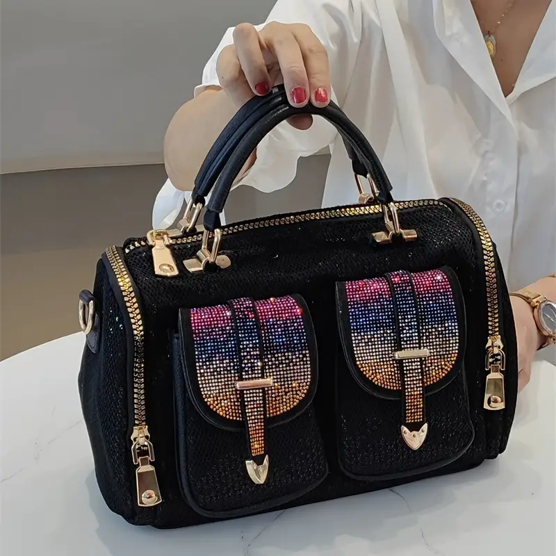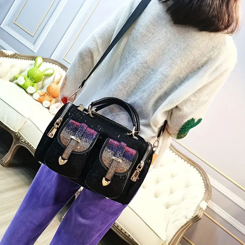 Edgy Rhinestone Sequin Handbag – Retro-Inspired Crossbody with a Comfortable Handle |