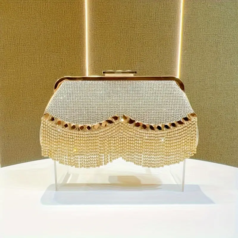 Stylish Rhinestone Tassel Evening Bag – Perfect Sequined Clutch for Parties, Proms & Weddings