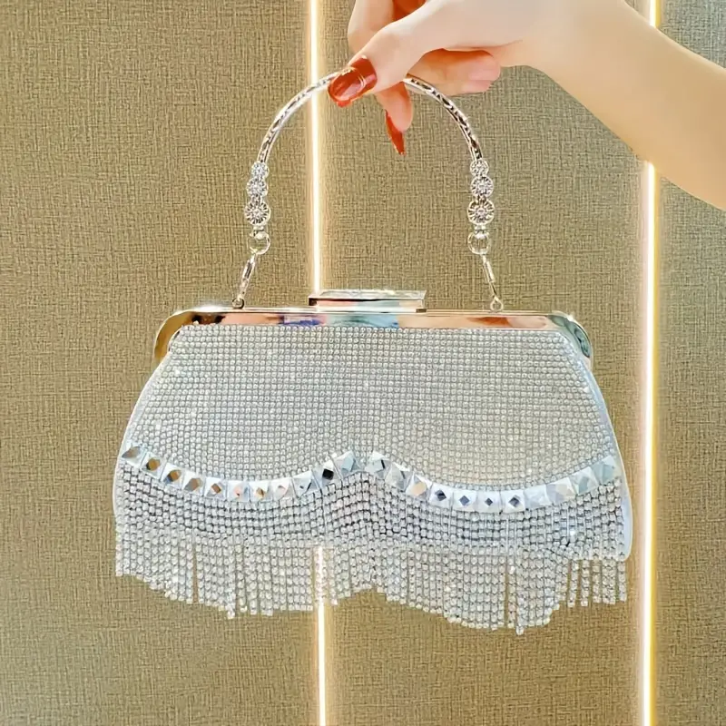 Elegant Sequined Handbag with Rhinestone Tassel – Ideal Women's Clutch for Special Occasions
