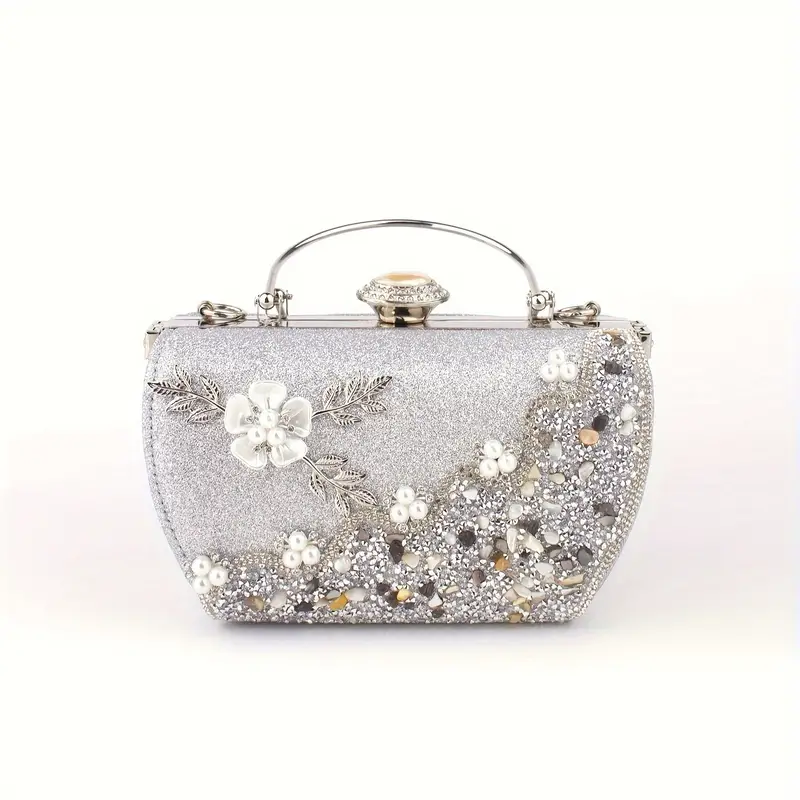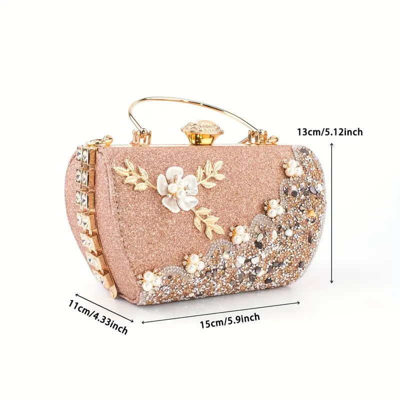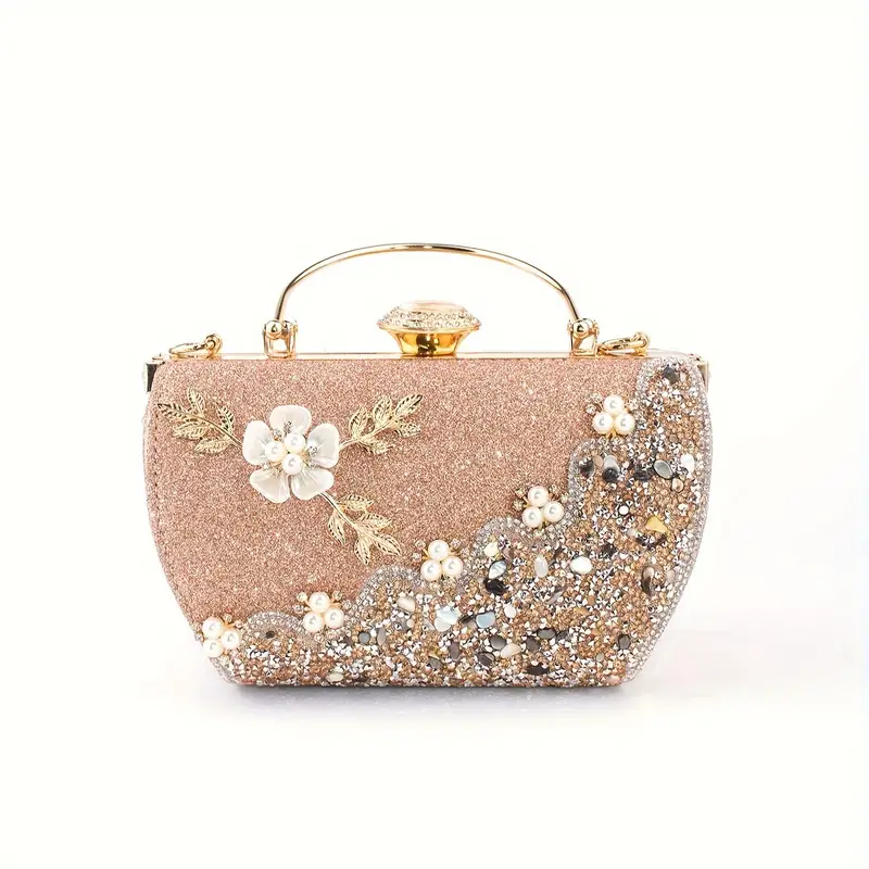 Floral Rhinestone-Embellished Clutch – Detachable Strap, Perfect for Weddings, Banquets & Formal Events |