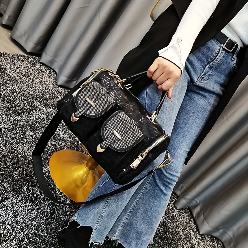 Shimmering Rhinestone Sequin Crossbody – Glamorous Vintage Bag with Dual Wearability |