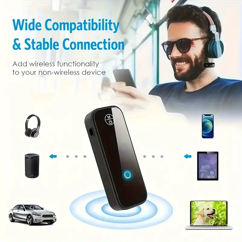 2-in-1 Wireless Bluetooth 5.0 Audio Adapter – Transmitter & Receiver for TV, Car, Headphones, and More with 3.5mm AUX |