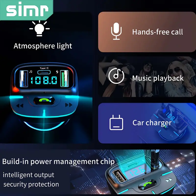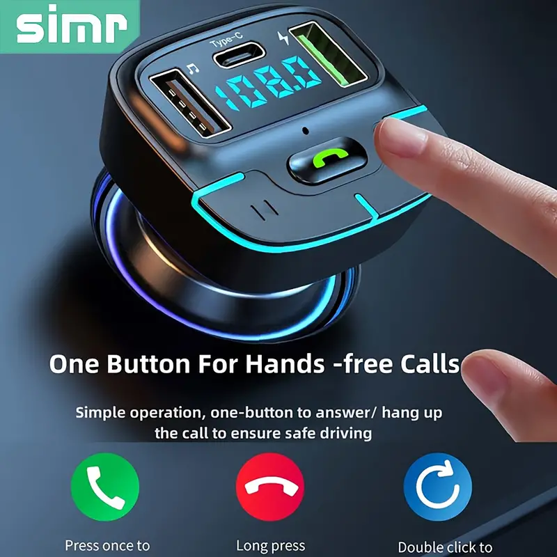 Wireless Car MP3 Player with Dual USB & PD Type-C Fast Charging – Crystal-Clear Lossless Sound, One-Touch Hands-Free Calling & FM Transmitter