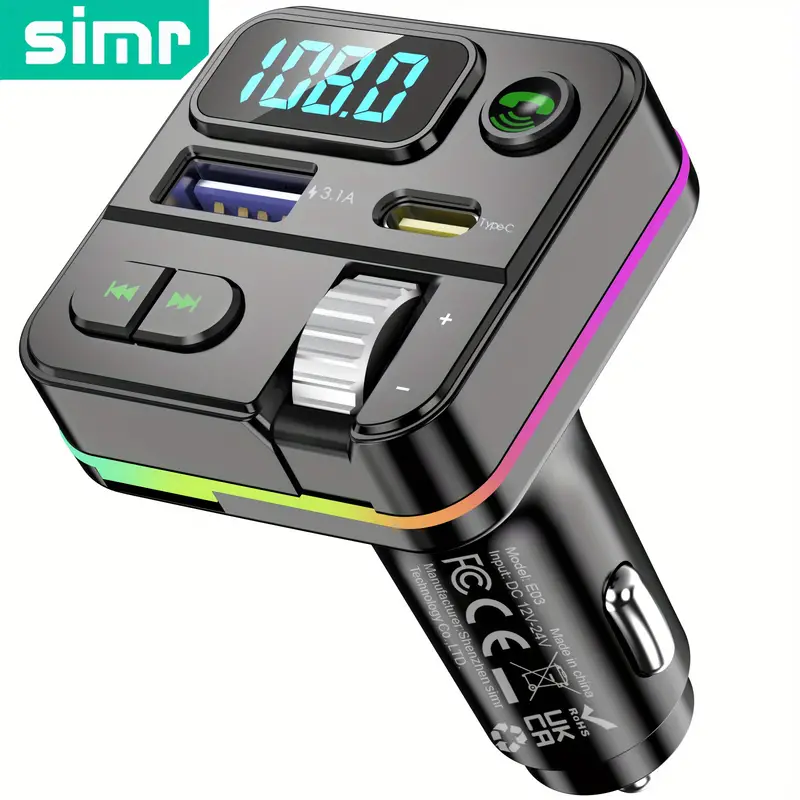 Handsfree Car Kit with FM Transmitter – Rotatable MP3 Player, Type-C Fast Charging & USB Compatibility