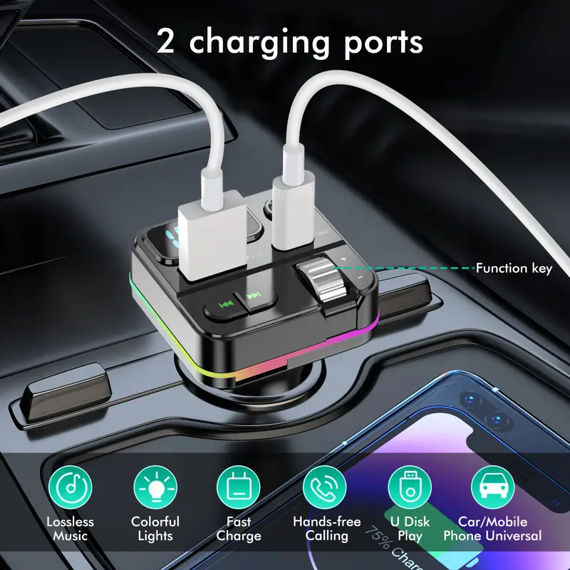 Car FM Transmitter with Type-C Fast Charging – MP3 Player, Handsfree Calling, and USB Charger in One