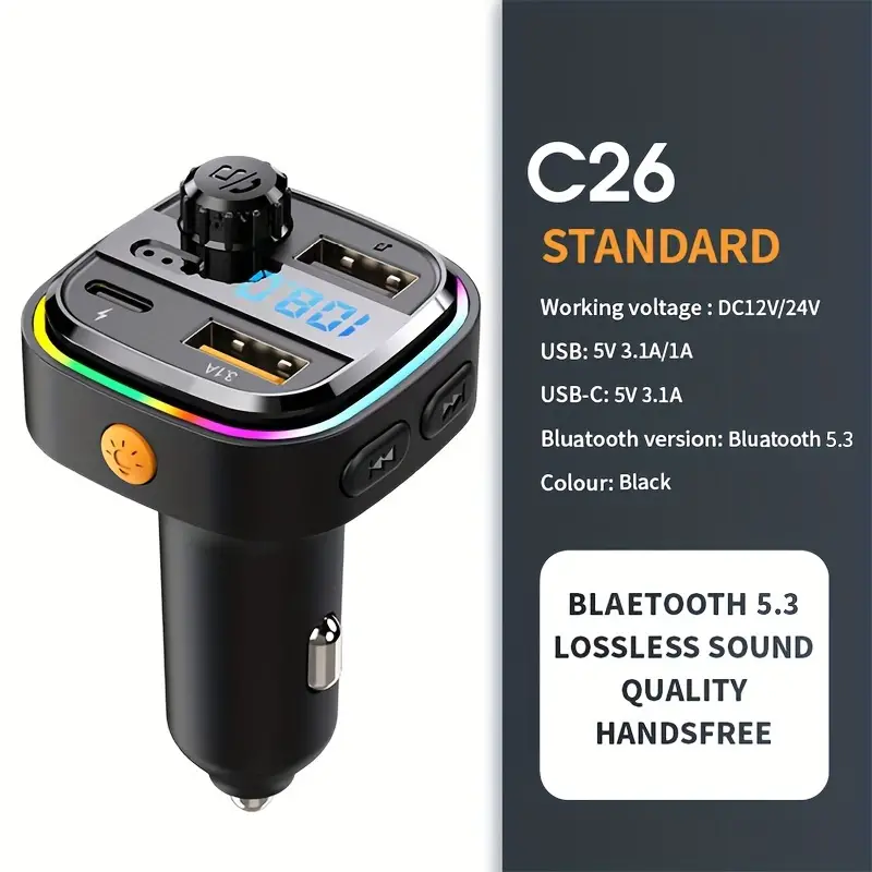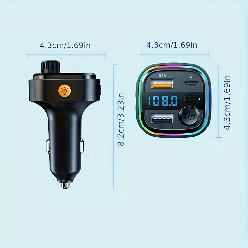 Ruancheng FM Transmitter with Wireless Connection – Dual Charging Ports, 3.1A Quick Charge, Hands-Free Calls & Music Streaming
