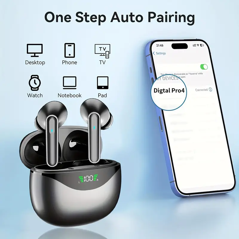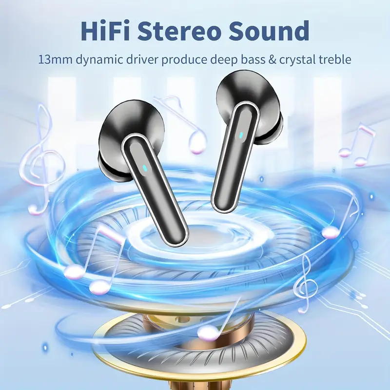 | HiFi Stereo Wireless Earbuds with 5.3 Bluetooth – Dual-LED Display, Sweat-Resistant & Perfect for Running |
