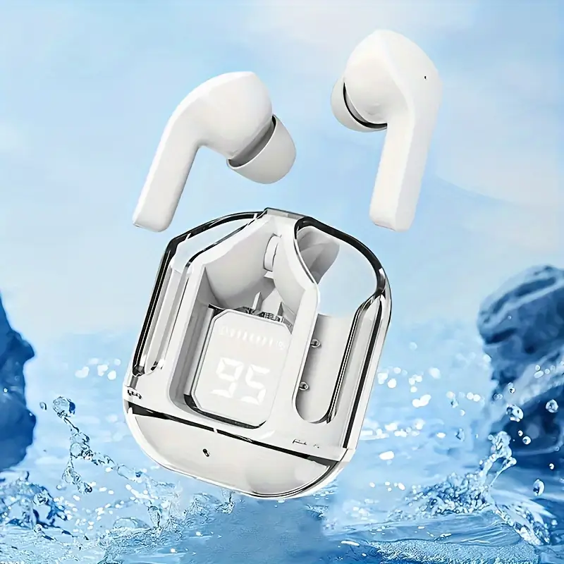 | Wireless Earbuds with LED Display – Transparent Plastic, Condenser Mic, Media Control, Rechargeable Battery, Ideal Gift for Adults |