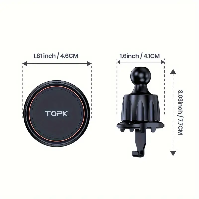 Upgraded N52 Magnetic Car Phone Holder – TOPK D45 Air Vent Mount for Universal Smartphone Use |