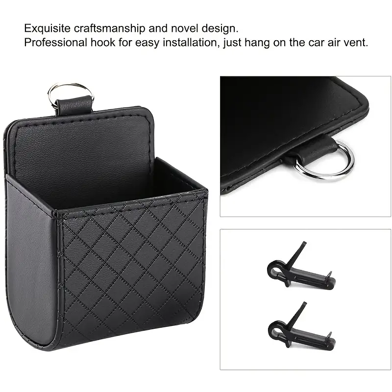 Car Interior PU Leather Phone Holder – Air Vent Hanging Storage Box for Phones & Small Items