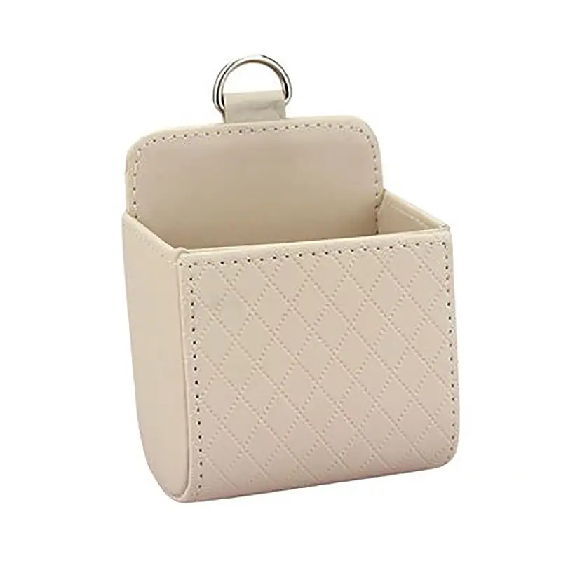 PU Leather Mobile Phone Holder for Car – Air Vent Hanging Storage Box for Organizing Accessories