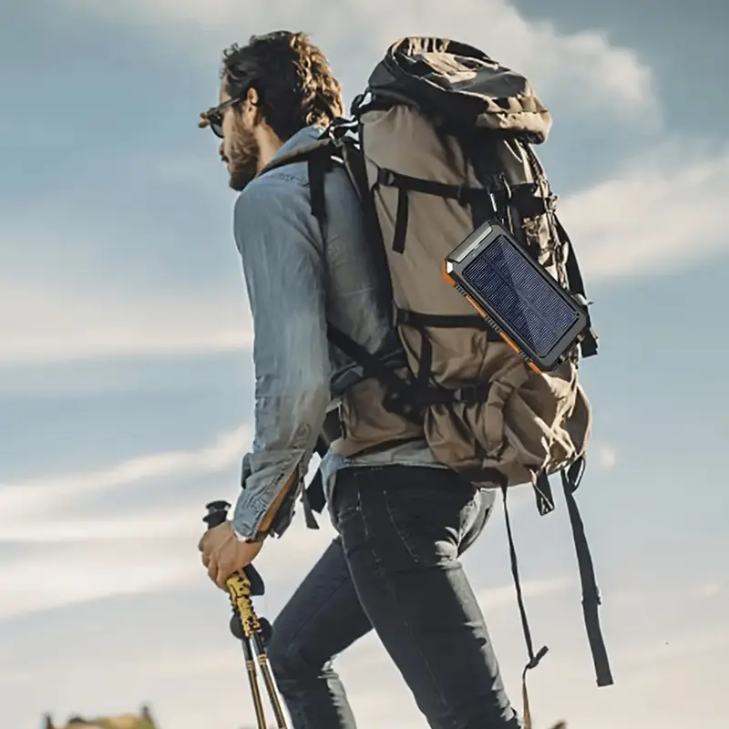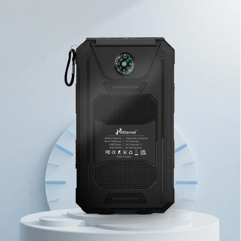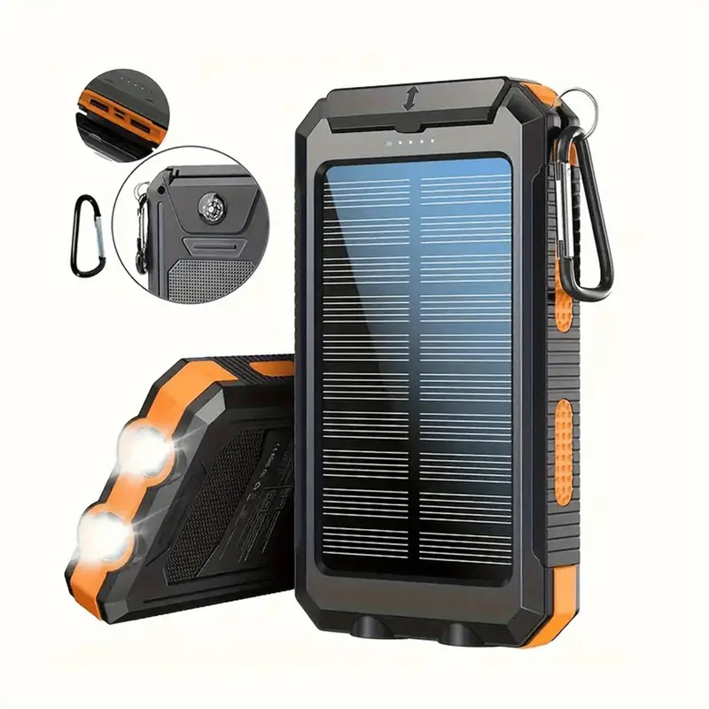 Solar Charger 10,000mAh with Dual USB and LED Flashlights – Portable Battery for Camping and Travel