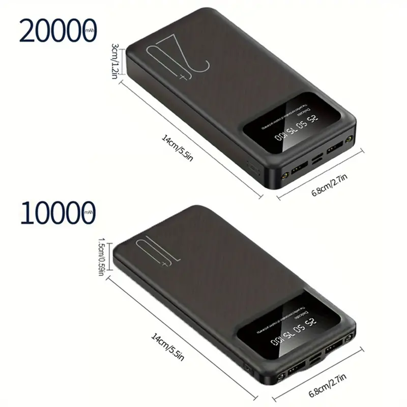 10,000mAh/20,000mAh Power Bank with Digital Display – Fast 5V2.1A USB Charging, Compatible with iOS/Android Devices